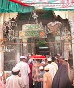Over the tomb, there is a silver ‘chaparkhat’ (canopy) inlaid with pieces of mother-of-pearl presented by Emperor Jahangir. Between the four poles supporting this `chaparkhat’, there is silver `katehra’ (railing) with an arch towards the south. There is another outer silver katehra running around the tomb at a distance of about 2 feet. The devotees are led into this space to offer flowers and prayers over the tomb. The ceiling of the dome is covered by a costly velvet chatgiri. A peculiar kind of fascinating aroma prevails in the shrine which inspires the visitors with a spontaneous and irresistible urge for devotion and homage towards the asleep saint. As soon as one enters the interior of the shrine, he feels as if he is in the presence of some exalted soul or mighty spiritual king.